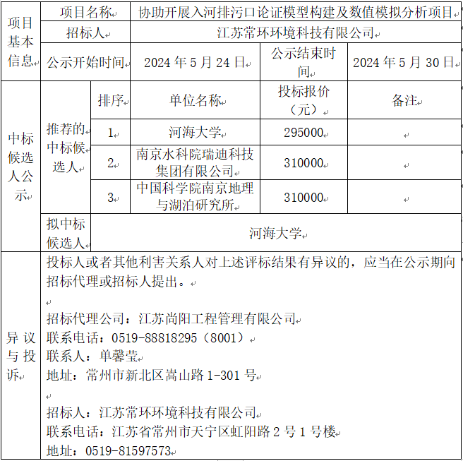 協(xié)助開展入河排污口論證模型構(gòu)建及數(shù)值模擬分析項目中標候選人公示